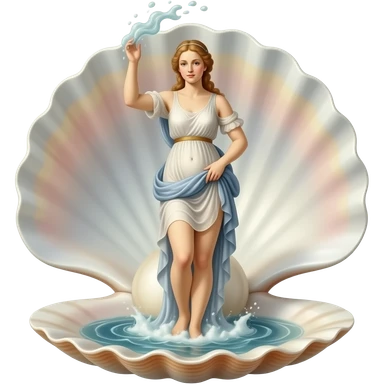 a realistic - a slender, elegant Venus with good muscles, according to a painting by Sandro Botticelli, is born from sea foam and holds Da Vinci's Mona Lisa in her hands emoji