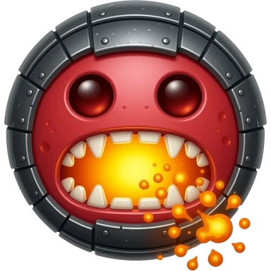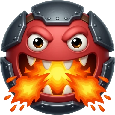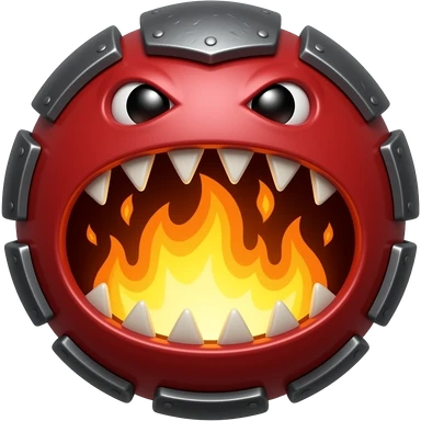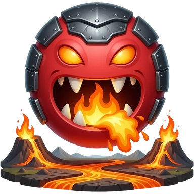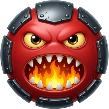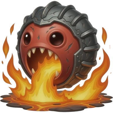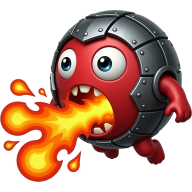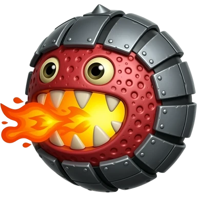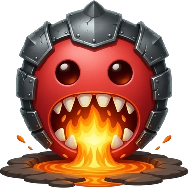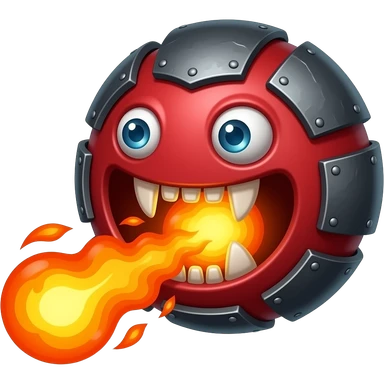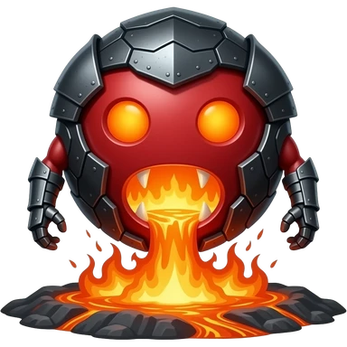 A red floating round sime-ball-like monster with charcoal armor plates and a furnace-hot jaw. It spits fireballs and snaps with explosive bursts of heat. No platform. emoji