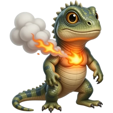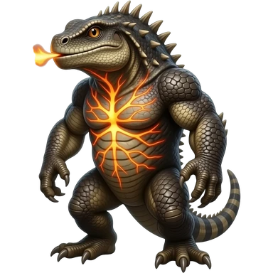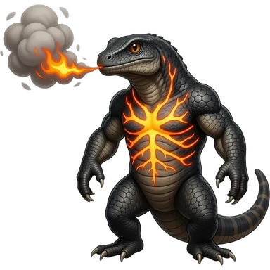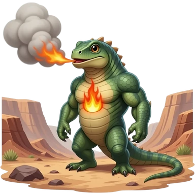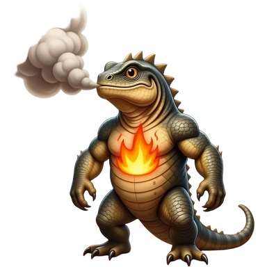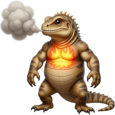 A stocky reptilian creature that stores heat in its chest and exhales thick, burning ash clouds. It prefers dry canyons and volcanic slopes emoji | AI Emoji Generator
