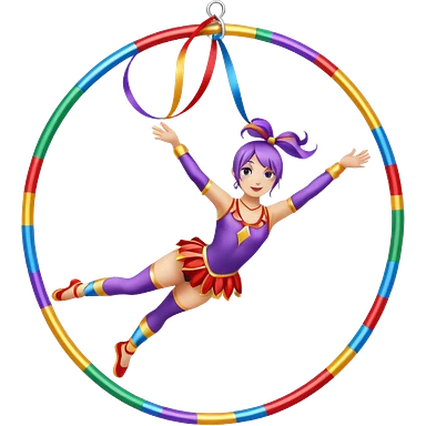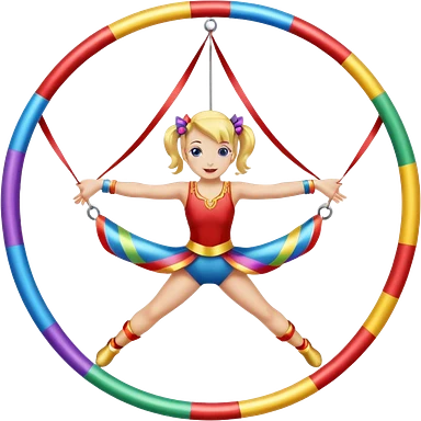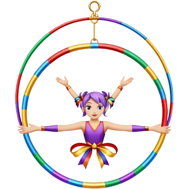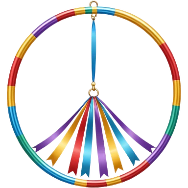 A metallic acrobat hoop decorated with ribbons, perfect for aerial stunts inside the circus tent. emoji