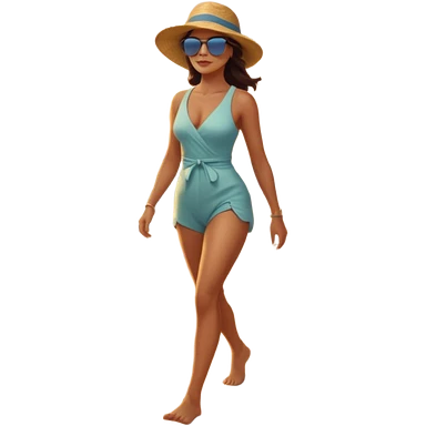 A strong woman walking alone on a serene beach at sunrise, waves touching her feet, feeling empowered and peaceful, cinematic lighting, inspirational mood, ultra-detailed, 8k” emoji | AI Emoji Generator