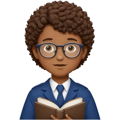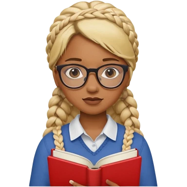 A student, girl, brown skin, braid blonde hair, wearing glasses, hold book in front of their chest emoji | AI Emoji Generator