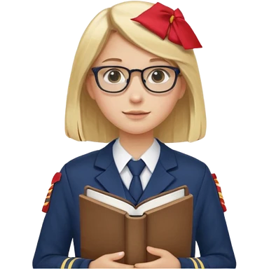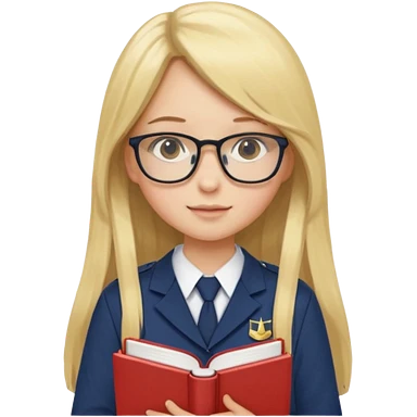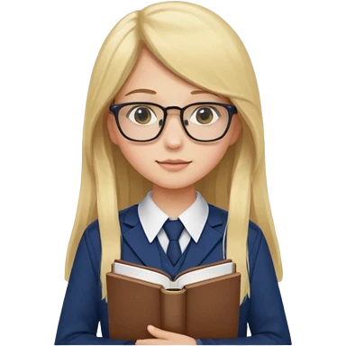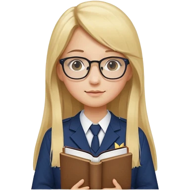 Girl student wearing uniform, glasses, hold book in front of their chest, blonde long straight hair, white skin emoji