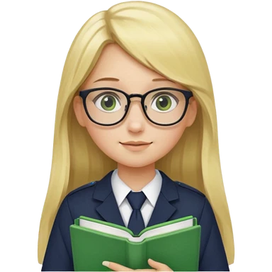 Girl student wearing uniform, glasses, hold green book in front of their chest, blonde long straight hair, white skin emoji