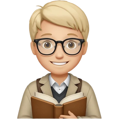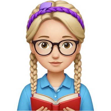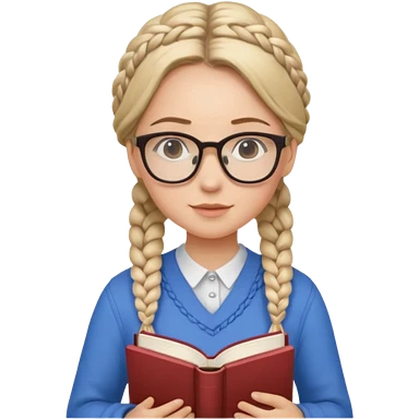 A student, girl, wearing glasses, hold book in front of their chest emoji | AI Emoji Generator