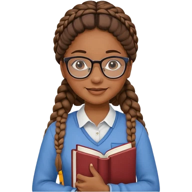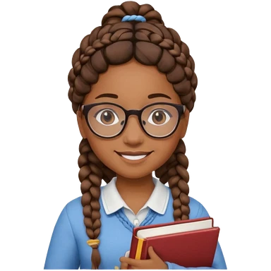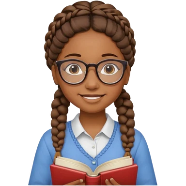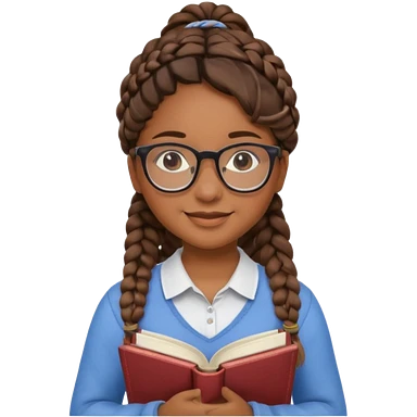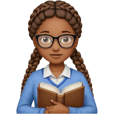 A student, girl, brown skin, braid hair, wearing glasses, hold book in front of their chest emoji