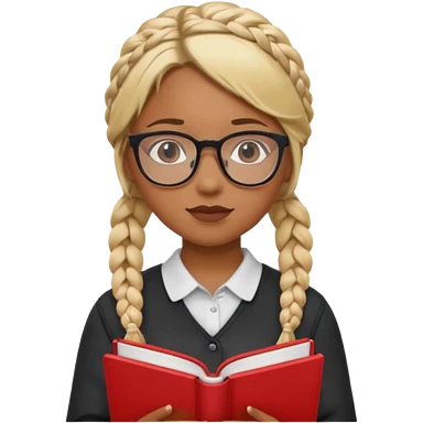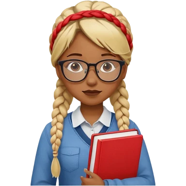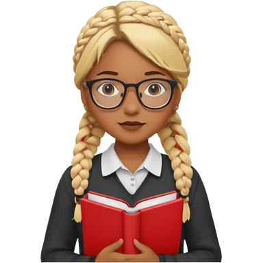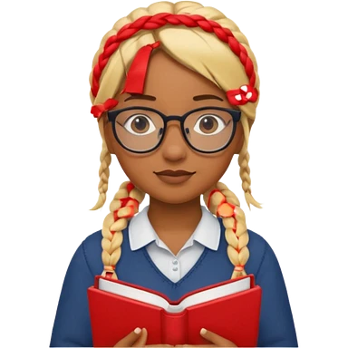 A student, girl, brown skin, braid blonde hair, wearing glasses, hold red book in front of their chest emoji