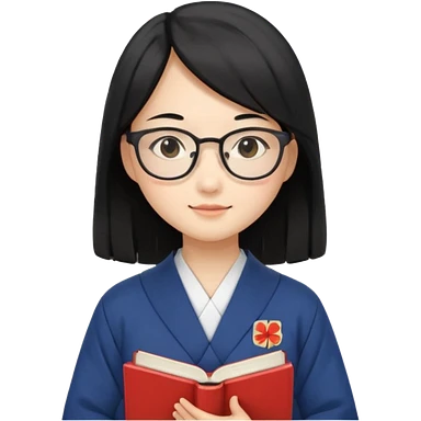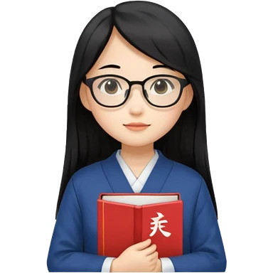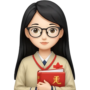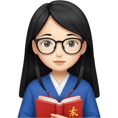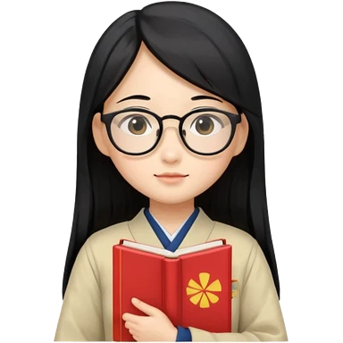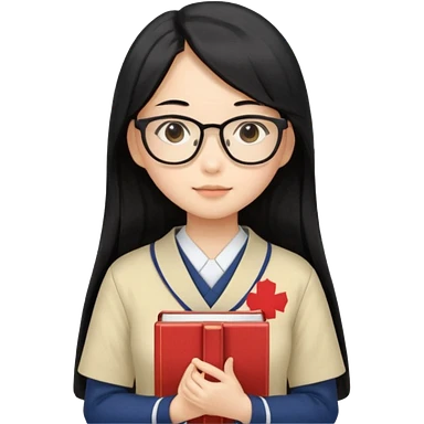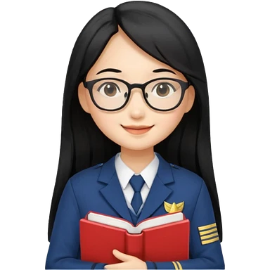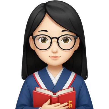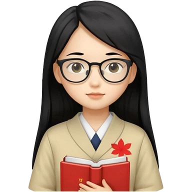 A student, asian girl, long black hair, wearing glasses, uniform, hold book in front of their chest emoji