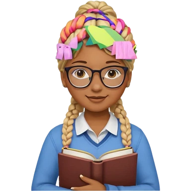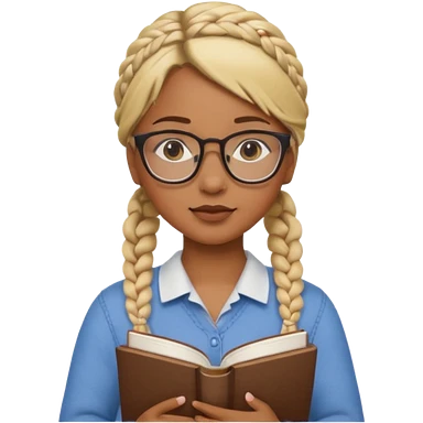 A student, girl, brown skin, braid blonde hair, wearing glasses, hold book in front of their chest emoji