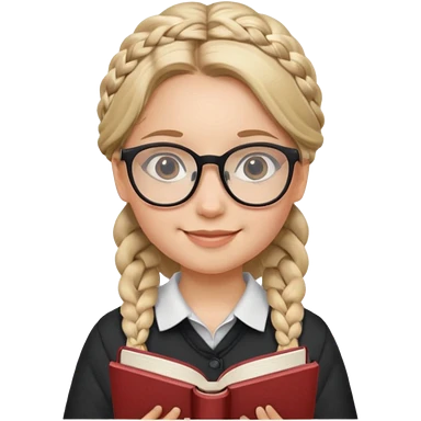 A student, girl, braid hair, wearing glasses, hold book in front of their chest emoji
