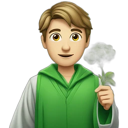 a student in a green robe with a green sprout in his hands. emoji | AI Emoji Generator