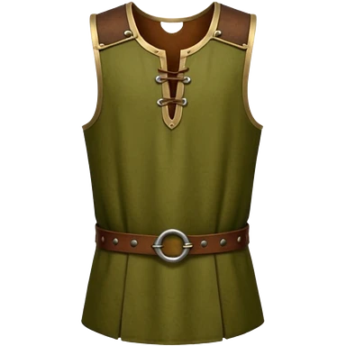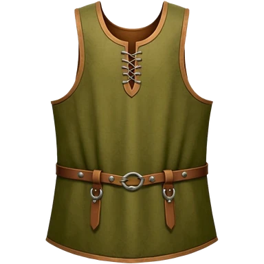 A stylized 3D render of a sleeveless medieval tunic, olive green fabric, scoop neck with a small keyhole opening fastened by brown leather toggles. emoji | AI Emoji Generator