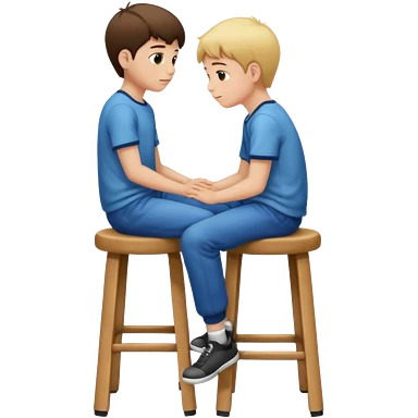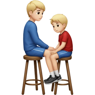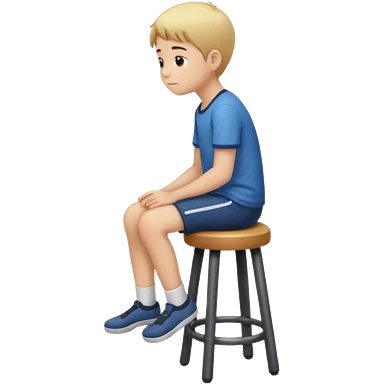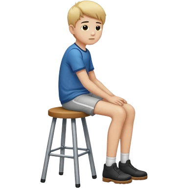 a boy is sitting on a stool seeing whole body on left side emoji