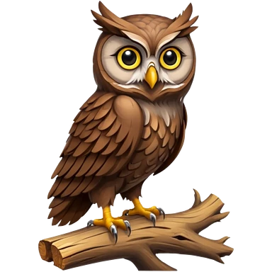 A majestic owl with wide eyes sitting silently on a stump. emoji