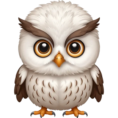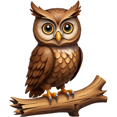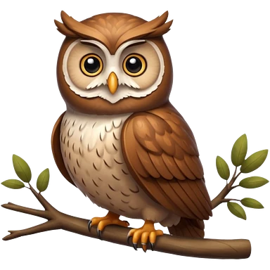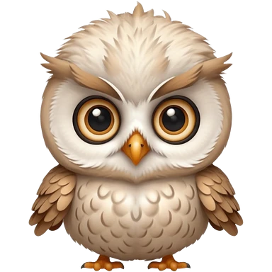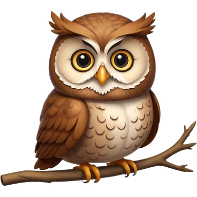 A chubby owl perched on a branch, sporting a fluffy feathery beard and looking very wise yet cute. emoji