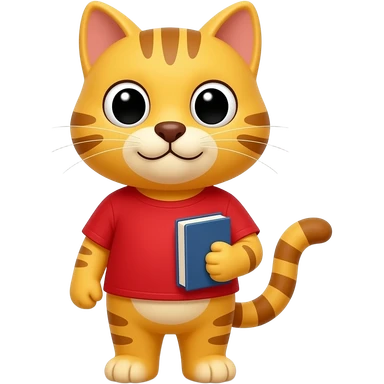 I am a yellow cat in a red t-shirt. I have a big brown nose. I like reading books emoji