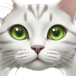 A girl with green eyes and dark brown straight hair, and makeup nude lipstick and eyelashes, slightly tanned, oval light pink fingernails, white top, holding a brown tabby cat with green eyes emoji