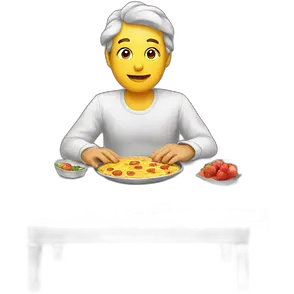 a man sits sadly at a table with a burning house behind him, apple style emoji emoji
