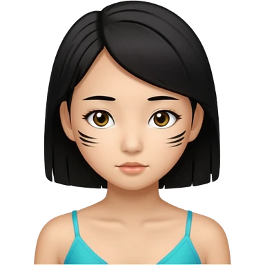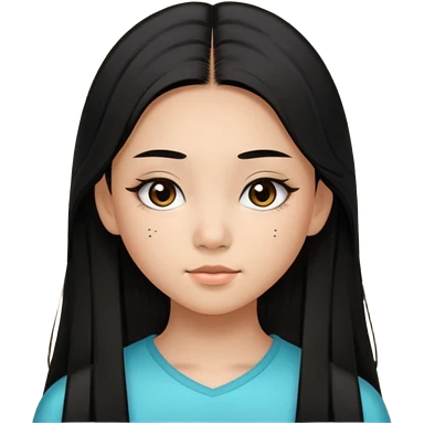 a tan chinese-american 15 year old girl with straight black hair down to her chest. mascara and a little blush. emoji | AI Emoji Generator