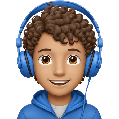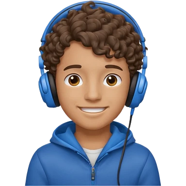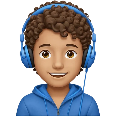 A boy with curly hair and tan skin and a happy face with blue headphones emoji
