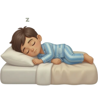 a tanned boy sleeping in pyjamas in bed with zzz over her head emoji
