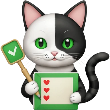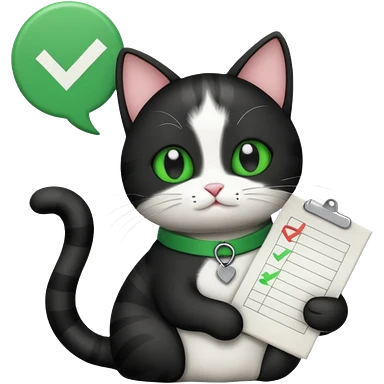 A black and white Cat holding a list with a green check mark symbolizing a task is done. emoji