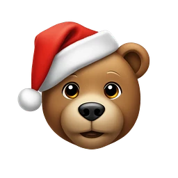 FLUFFY Teddy bear wearing a santa hat, SMILLING EYES CLOSED WITHS HEARTS AROUND HIS HEAD emoji