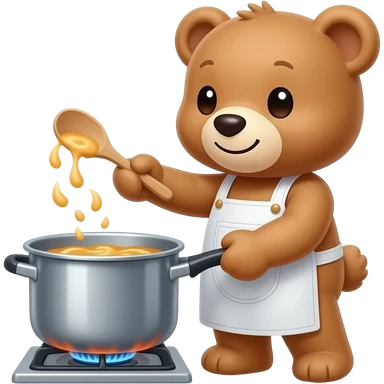 a teddy bear working with a warm pot on a stove emoji | AI Emoji Generator