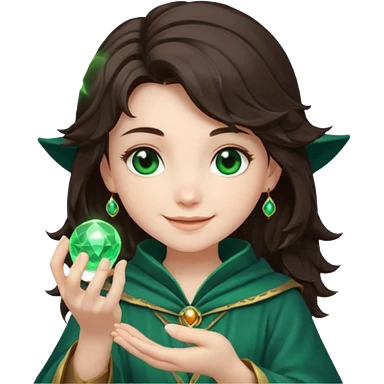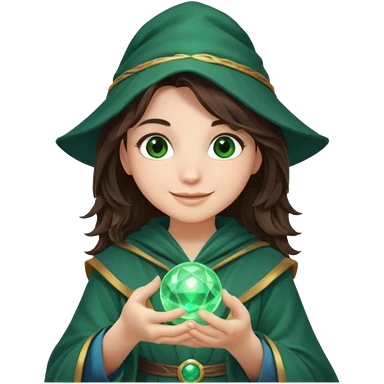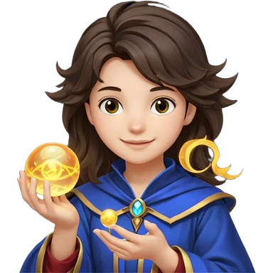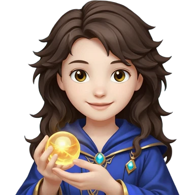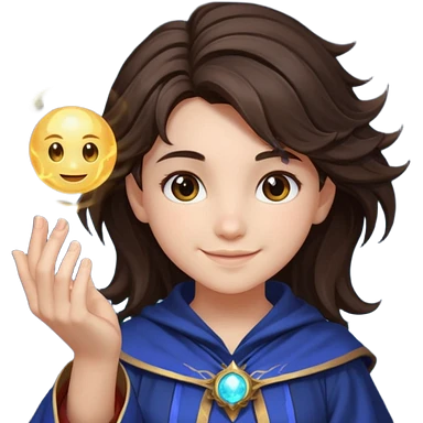 A teen brunette mage with tousled hair, holding a tiny glowing orb and smiling confidently. emoji | AI Emoji Generator
