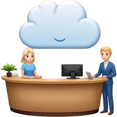 A thinking person with a thought cloud showing a modern hotel reception emoji