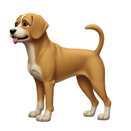 Three legged dog that is medium size with floppy ears and is orange ish brown color emoji