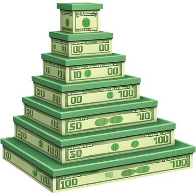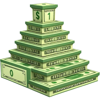 A three-level podium made entirely of stacked banknotes, rising from left to right with each step higher than the previous one. emoji