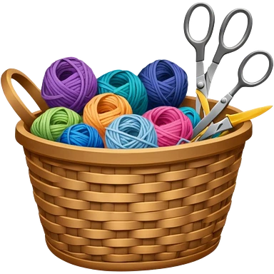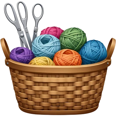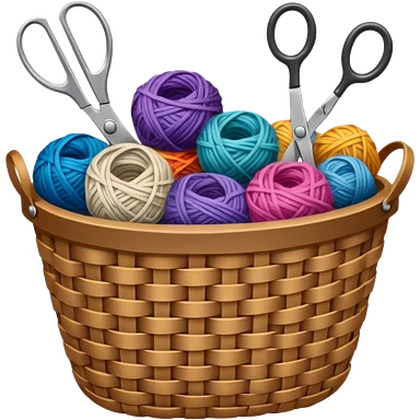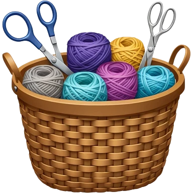 A tidy basket with neatly arranged skeins and scissors. emoji