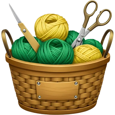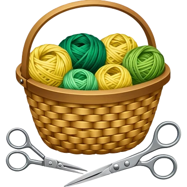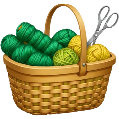 A tidy basket with neatly arranged green and yellow skeins and scissors. emoji | AI Emoji Generator