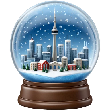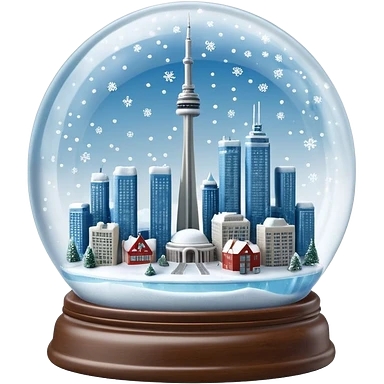 A Tiny beautiful hyperrealistic Glass Snow globe, with Toronto City CN tower and the skydome within the global, full of sparkling snow, expressing a snow storm in ontario. Isolated, 3D render, 4k, dpi 300 emoji | AI Emoji Generator