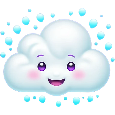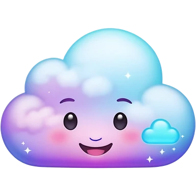 A tiny kawaii cloud emoji with a cheeky smile and wink, soft neon glow in purple/cyan, little sparkles floating, playful delulu vibe. emoji | AI Emoji Generator