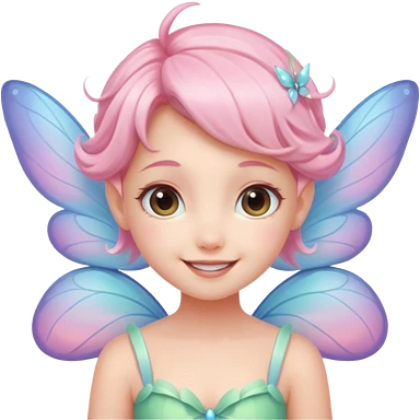 A tiny pastel fairy with glowing wings and a sweet smile emoji