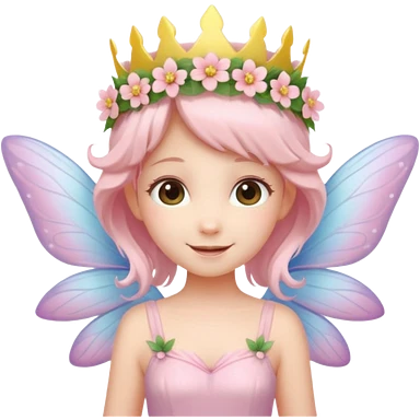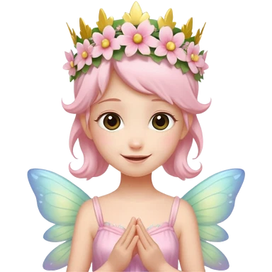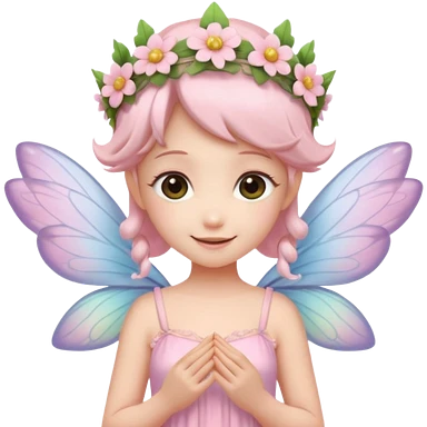 A tiny pastel fairy with glowing wings and a sweet smile and tiny flower crown emoji | AI Emoji Generator