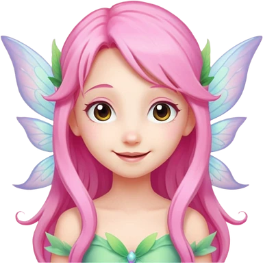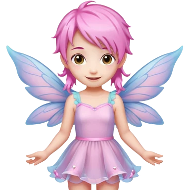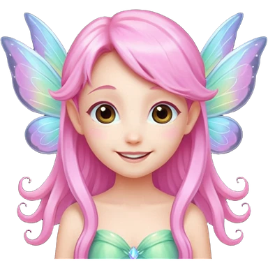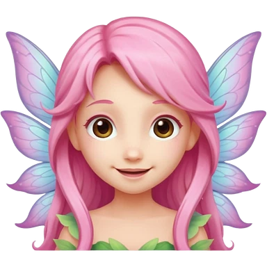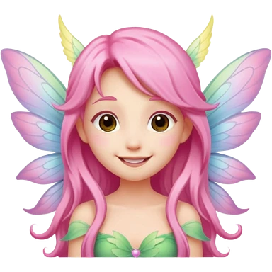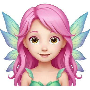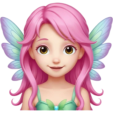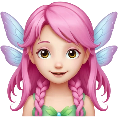 A tiny pastel fairy with pink hair with glowing wings and a sweet smile emoji | AI Emoji Generator