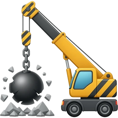 A wrecking attached by a thick chain to a boom on the crane emoji