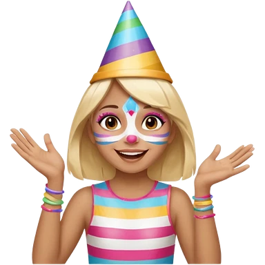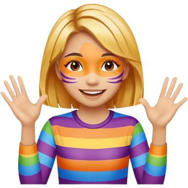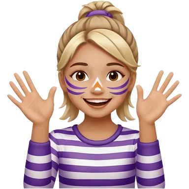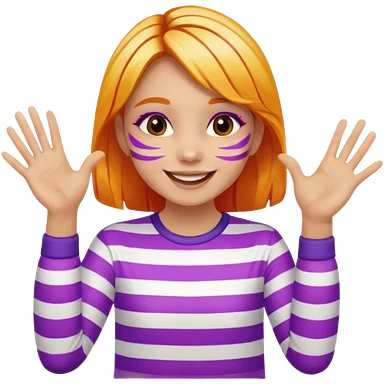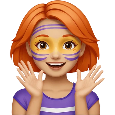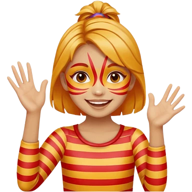 A cheerful girl with face paint stripes, clapping her hands with joy. emoji