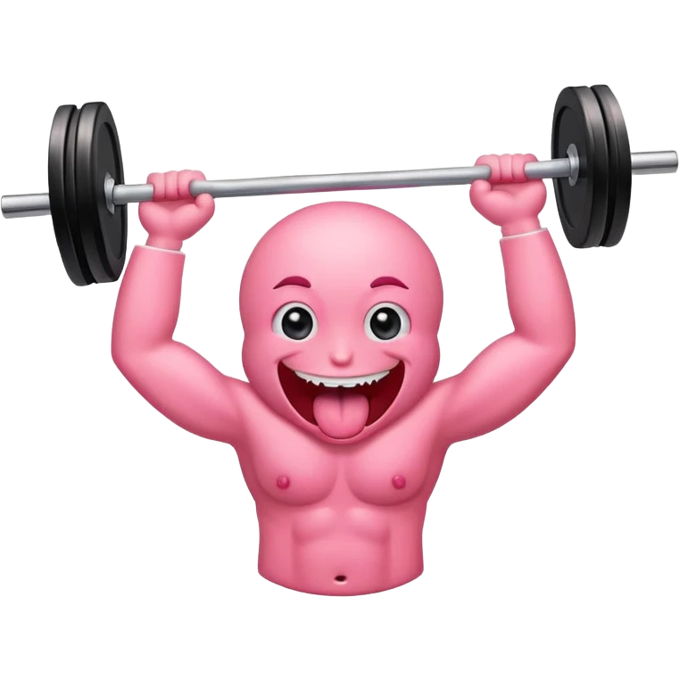 a tongue with eyes and arms, smiling, holding a barbell overhead emoji | AI Emoji Generator
