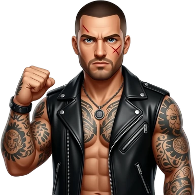 A tough, gang-affiliated person—muscular and covered in tattoos. emoji | AI Emoji Generator