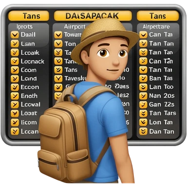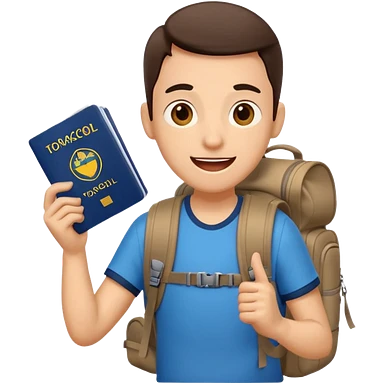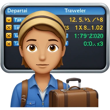 a traveler with a suitcase beside a city welcome sign, friendly and vibrant emoji style emoji | AI Emoji Generator