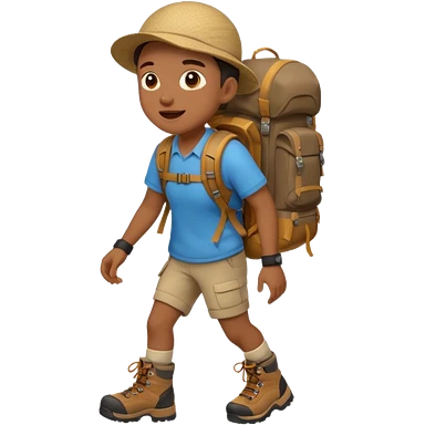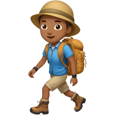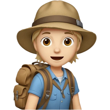 Icon for Travel Documentary: A vintage TV-style design with a traveler pointing backward, telling a story in the jungle. Include lush greenery, exotic animals, and a backpack. The traveler should be wearing a hat and holding a map. Retro, informative TV style. Transparent background. emoji
