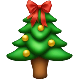 christmas tree with a pink bow an shopping bags underneeth emoji