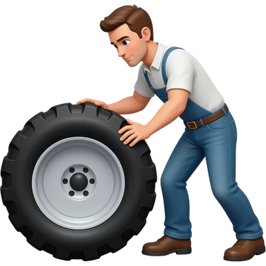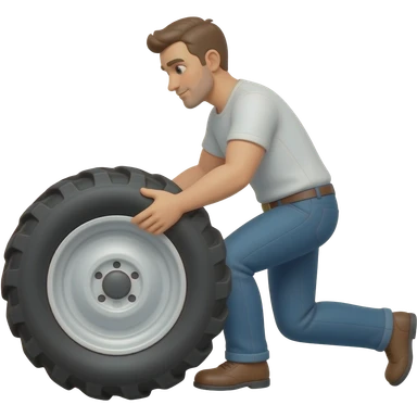 a man turning a tractor tire but the tire is horizontaly emoji