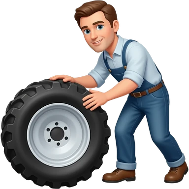 a man turning a tractor tire horizontaly emoji