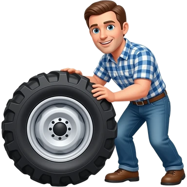 a man turning a tractor tire emoji