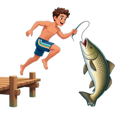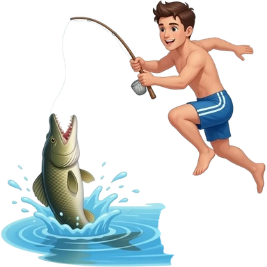 a guy jumping into the water for a long arapaima fish emoji